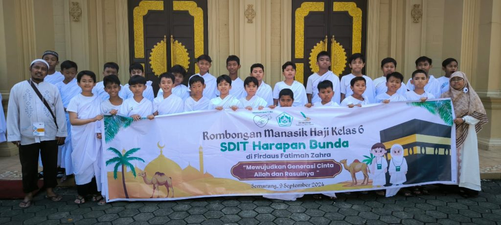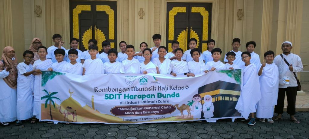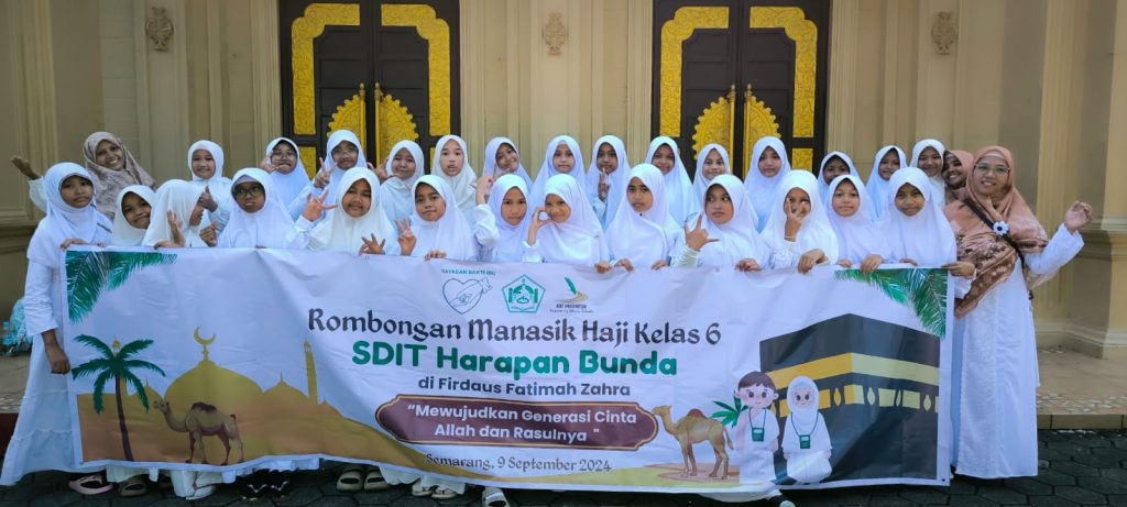 Senin (9/9/2024) Kelas 6 SDIT Harapan Bunda Semarang melaksanakan manasik haji dan umrah sebagai rangkaian pendidikan khas di SDIT Harapan Bunda Semarang. Semoga kegiatan ini mampu menginspirasi para siswa untuk senantiasa rindu baitullah dan berharap semoga bisa menyempurnakan rukun Islam.