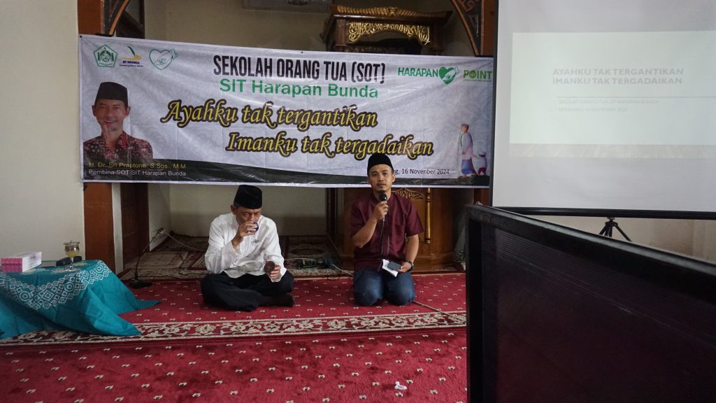 Sekolah Orang Tua yang dilaksanakan pada Sabtu, 16 November 2024 di Masjid Al-Quds bertema “Ayahku tak tergantikan, Imanku tak tergadaikan” dengan pembicara H. Dr. Sri Praptono, S.Sos., M.M. Alhamdulillah kegiatan berlangsung dengan lancar dengan dihadiri beberapa Ayah Bunda. SOT kali ini sekaligus menjadi peringatan Hari Ayah sembari mensinergikan peran Ayah dalam pendidikan Ananda supaya selaras dengan Kegiatan Belajar Mengajar Ananda di sekolah. Kegiatan dilaksanakan dengan dukungan dari paguyuban kelas 3 dan 4. Barakallah fiikum semoga menjadi langkah baik sekolah dan Ayah Bunda untuk lebih meningkatkan pendidikan Ananda. Aamiin